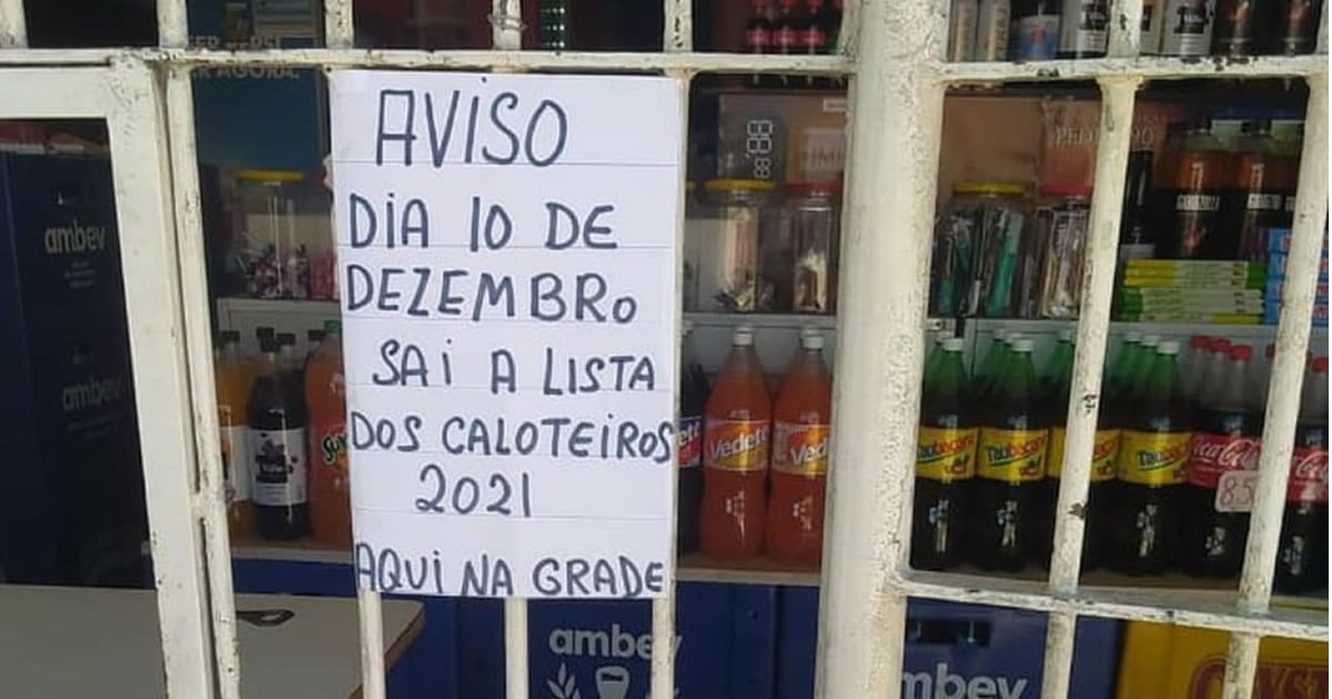 Em novembro deste ano, um aviso foi colocado na entrada do bar indicando que, no mês seguinte, seria colocada a lista dos “caloteiros 2021” na grade do estabelecimento. Conforme prometido, os nomes dos devedores foram expostos na placa, o que despertou a curiosidade de um jovem.