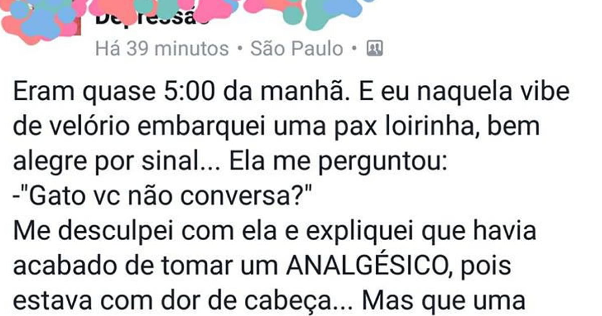 Vamos imaginar a cena do motorista do UBER explicado o que é analgésico para a loira.