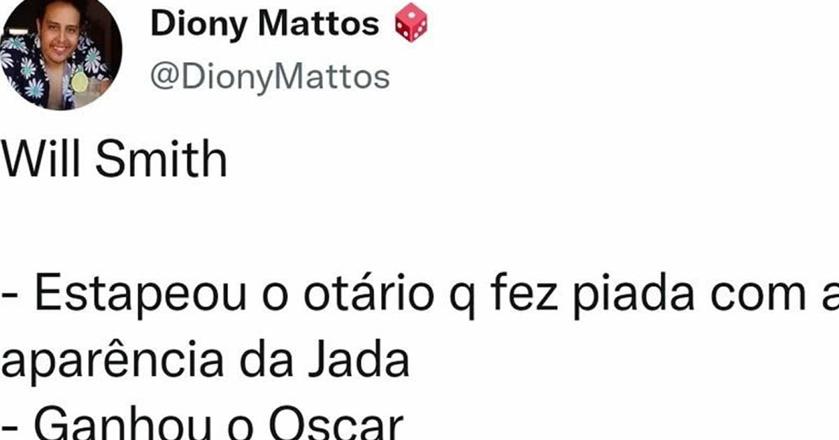 Will Smith deu um tapa em Chris Rock no palco do Oscar 2022, que acontece na noite deste domingo (27), em Los Angeles. O humorista fez uma piada sobre Jada Pinkett-Smith, mulher do ator, estar parecida como uma “G.I. Jane”, uma versão feminina da elite da Marinha Americana por causa de sua careca, fazendo alusão ao personagem de Demi Moore em Até o Limite da Honra. Jada já falou abertamente sobre ter uma condição de perda de cabelo, a alopecia.