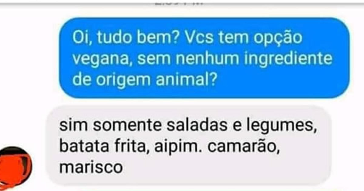 Houve uma tentativa de fazer um cardápio vegano 🗓️16 de junho de 2022🏷️PrintsLembrei de uma colega vegetariana contando da vez que a sogra deu um lanche com presunto pra ela. A justificativa da sogra foi que “presunto não é carne, é frios”