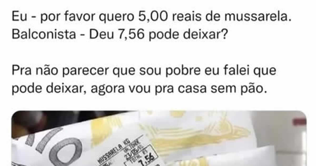 Quem nunca fez isso: Para não parecer que é pobre 🗓️20 de julho de 2022🏷️ImagensUma coisa que eu tenho raiva de ir no supermercado é você fala para o balconista que gostaria de 1kg de algum produto e ela aparece com 1kg e meio e se você fala que só quer 1kg a pessoa fica brava.
