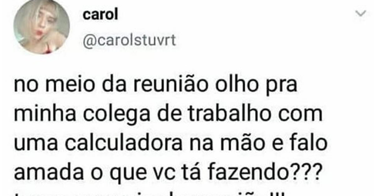 Motivo para usar calculado na reunião 🗓️25 de janeiro de 2023🏷️PrintsHoje é dia de reunião da empresa, você já sabe que o chefe vai ficar bravo e falar muitas coisas ruins. Então nada melhor levar uma calculadora para fazer as contas se vale ou não a pena ficar nesse serviço.