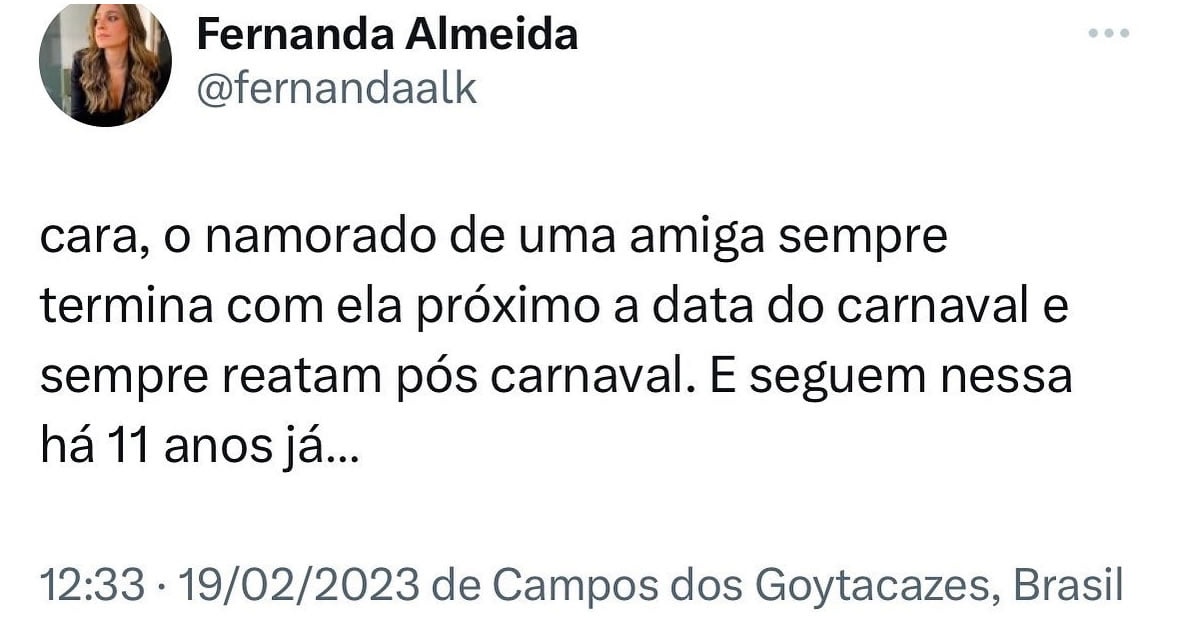 Dica de namoro: Carnaval 🗓️21 de fevereiro de 2023🏷️PrintsPara você que vai curti o carnaval namorando confira essa ótima dica. Termina o relacionamento, abusa do carnaval, depois só voltar com seu ex. E seja feliz.