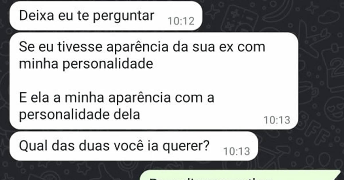 Você sente o suor escorrendo pela testa enquanto sua mente começa a trabalhar freneticamente, tentando encontrar a resposta perfeita que agradará a sua namorada sem comprometer sua sanidade. É como uma sessão de equilíbrio mental, uma corda bamba de palavras.