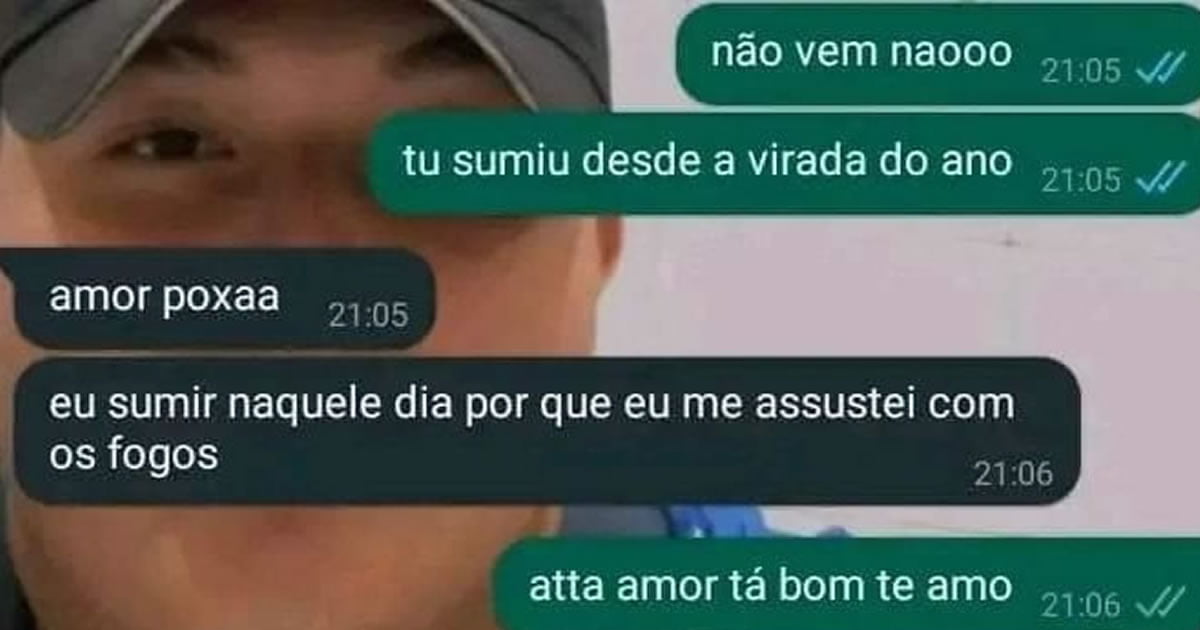 Quando finalmente o encontramos, lá estava ele, encolhido atrás de um arbusto, com os olhos arregalados e um ar de quem viu um fantasma. E a desculpa? Adivinha! “Ah, amor, os fogos me assustaram tanto que eu pensei que era o apocalipse e me escondi para sobreviver”.