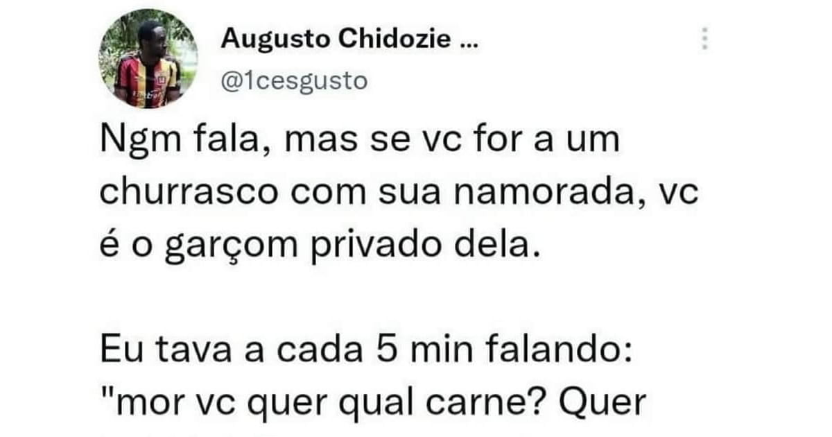 Ah, o famoso churrasco com a namorada, onde você deixa de ser apenas o parceiro e se transforma em um garçom particular. Quem nunca, não é mesmo?