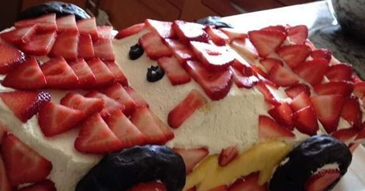 Esse bolo é a prova de que não há limites para a inovação brasileira. A cobertura cremosa é só o começo: fatias de morango perfeitamente alinhadas formam a aerodinâmica desse bolide culinário. As “rodas”, feitas com um toque especial de chocolate, dão o toque final, transformando esse doce em algo que qualquer criança (ou adulto) gostaria de experimentar.