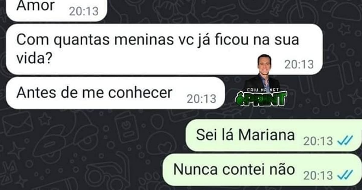Essa conversa é um verdadeiro clássico das relações modernas! Temos uma namorada curiosa, tentando descobrir o passado amoroso de seu parceiro, e um rapaz que, ao que parece, não é muito fã de números. Ele tenta escapar da pergunta com uma resposta genérica, mas a pressão aumenta e, no fim, ele solta um número que parece mais uma estimativa do que uma contagem real.