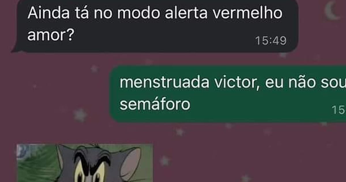 Ah, o amor e suas nuances! Nesta conversa, temos um clássico mal-entendido que poderia ser facilmente resolvido com um pouco mais de clareza. O parceiro, em sua inocência, pergunta se a pessoa ainda está “no modo alerta vermelho”. A resposta é um verdadeiro show de humor: “Menstruada, Victor, eu não sou um semáforo!”