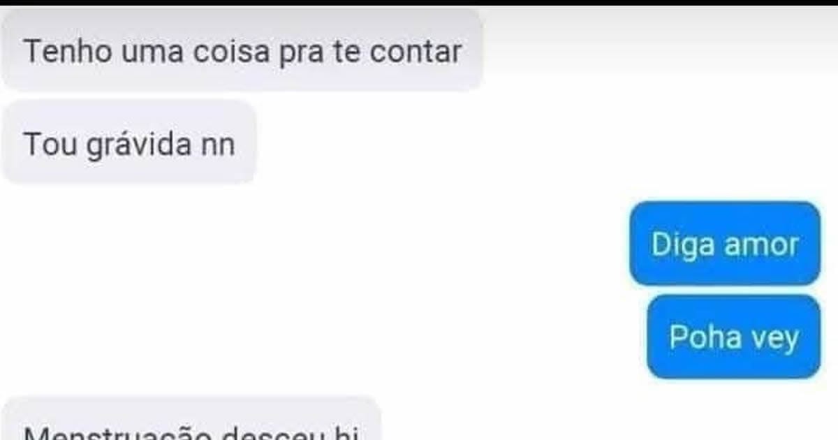 Ah, as delícias das mensagens de texto! Nessa imagem, temos um verdadeiro espetáculo da comunicação moderna, onde um simples “estou grávida” vira uma montanha-russa de emoções e piadas. E quem diria que a menstruação poderia causar tanta confusão? É como se a vida amorosa estivesse em um reality show, cheio de reviravoltas!