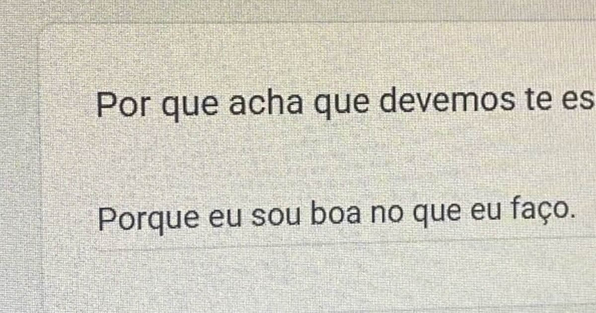 Essa é a clássica resposta de quem já cansou de vender seu peixe com firula e PowerPoint. Nada de “sou proativa, resiliente e trabalho bem em equipe” — aqui é sinceridade crua, sem tempero gourmet. A candidata basicamente disse: “Você que lute pra me contratar, porque se não for agora, alguém mais esperto vai me levar”. É o tipo de confiança que não se ensina na faculdade, só se adquire depois de sobreviver a três empregos CLT, dois estágios sem vale-transporte e uma sociedade que insiste em pedir “mínimo de 5 anos de experiência” pra vaga de júnior.