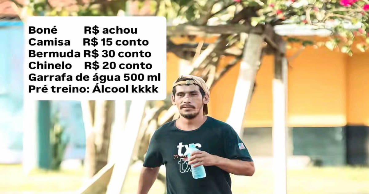 O boné nem preço tem, porque foi encontrado na rua — e isso sim é sustentabilidade esportiva. O treino funcional inclui desviar de poste, equilibrar o chinelo, dar tchau pra vizinha e não tropeçar na calçada esburacada.