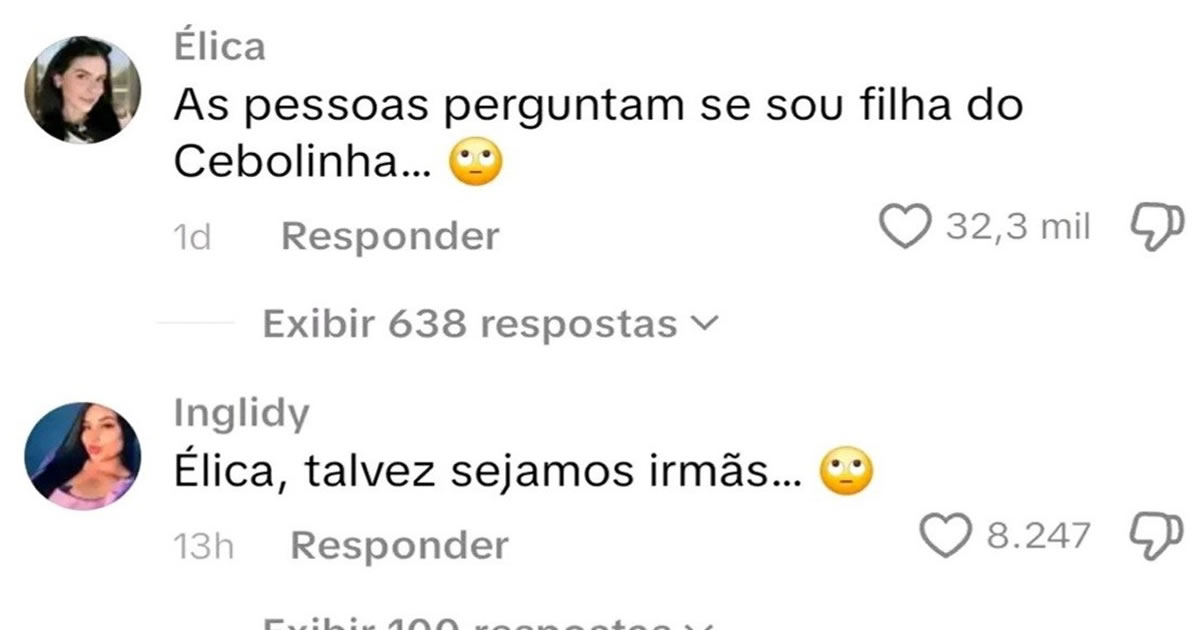 Existe uma nova árvore genealógica brasileira surgindo: a família Cebolinha. De um lado, a Élica dizendo que perguntam se ela é filha dele. Do outro, a Inglidy já cogitando irmandade. Logo depois aparece a Blenda confirmando a herança: “somos filhas do Cebolinha”. E, como toda boa reunião de família, surge a Ilina reivindicando o sobrenome e puxando mais um galho pra essa árvore. O curioso é que, diferente da Mônica, ninguém ficou bravo com a zoeira. Pelo contrário, virou uma confraternização online em que o único ausente foi o próprio Cebolinha, provavelmente ocupado tentando bolar mais um plano infalível contra o Sansão.