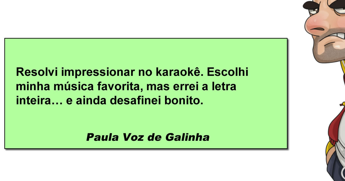 O detalhe é que o cérebro insiste em sabotar: a letra que você sabia de cor até no chuveiro simplesmente desaparece, como se tivesse fugido correndo do telão. E quando tenta improvisar, a criatividade transforma a música em uma versão inédita que nem o compositor reconheceria. A plateia, claro, vira júri do “The Voice do Desespero”, onde ninguém vira a cadeira, mas todos viram os olhos. A desafinada então é o tempero final, porque não basta errar a letra, tem que cantar em outra galáxia musical. No fim, fica a lição: karaokê não é sobre talento, é sobre coragem — e a coragem, pelo menos, você teve de sobra.