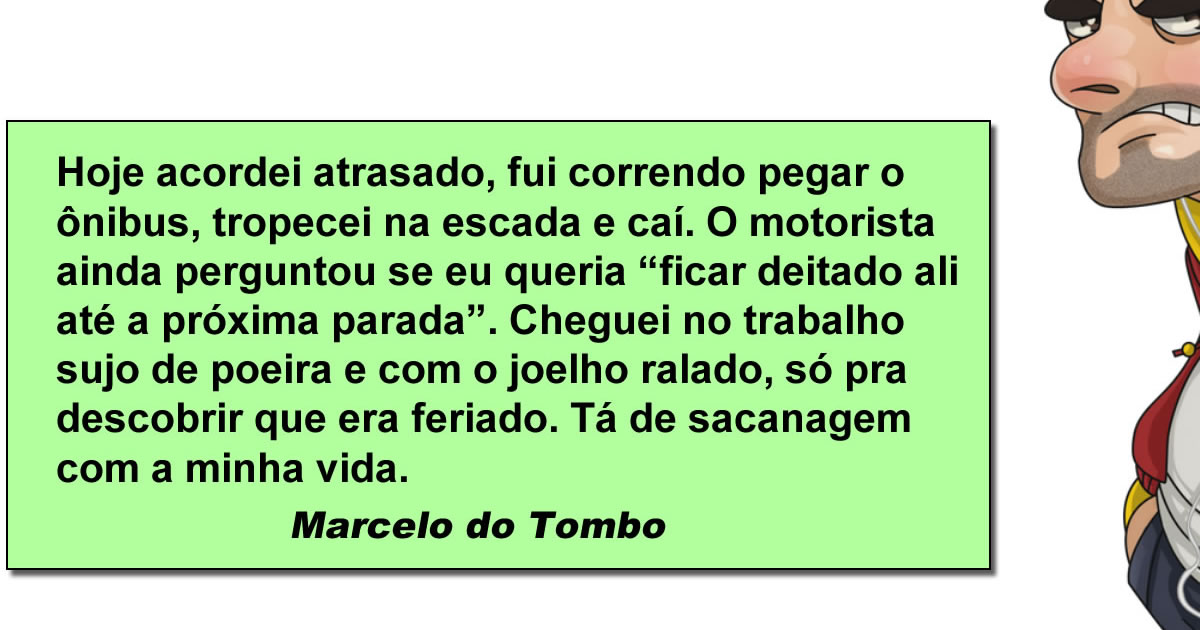 O brasileiro já nasce com o dom de perder tempo em situações inacreditáveis. Nada como acordar atrasado, correr feito maratonista sem medalha, tropeçar no degrau da esperança e ainda ouvir do motorista a clássica ironia que bate mais forte que a queda. É o universo lembrando: “relaxa, não é azar, é só sua vida mesmo”.