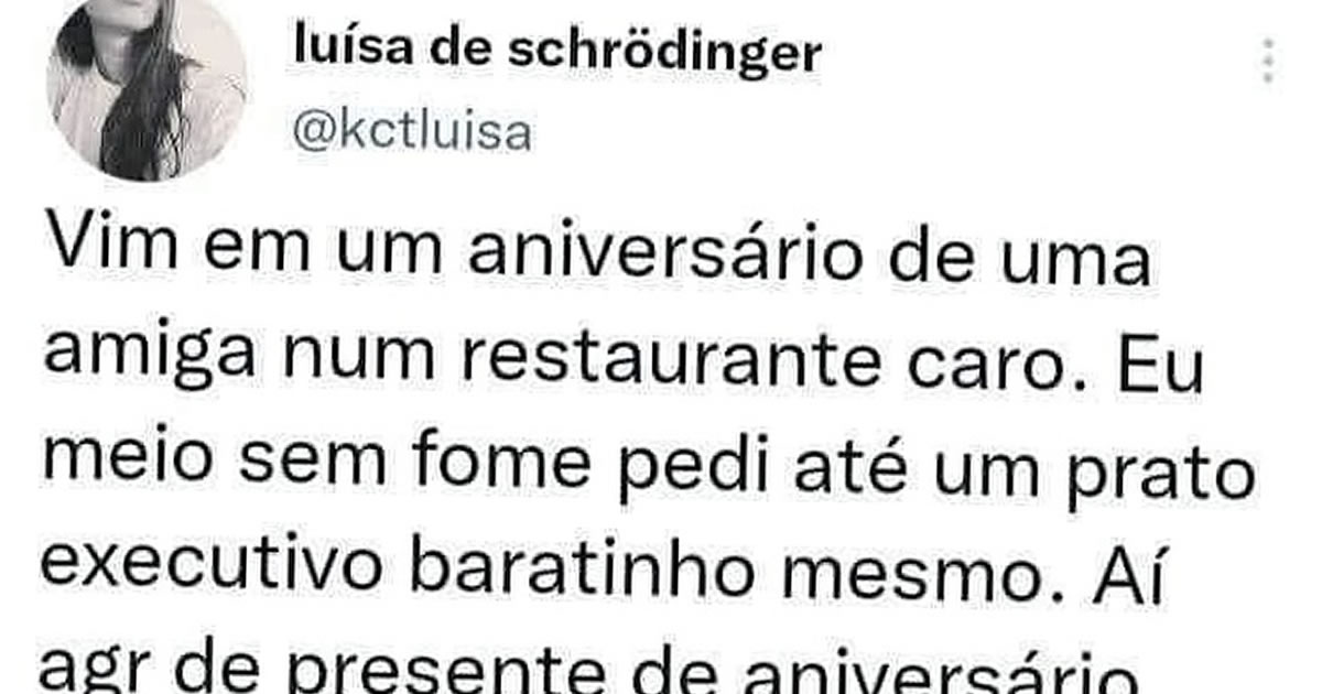 Essa é a prova definitiva de que o universo adora zombar da gente quando tentamos ser humildes. A pessoa pensa: “vou pedir só o básico, tô aqui pra comemorar, não pra falir”. E aí, o destino olha lá de cima, dá uma risadinha e fala: “ingênua demais”. Porque, claro, no dia em que o cardápio grita R$ 98 no risoto e R$ 120 na tábua de frios, é justamente o dia em que alguém resolve pagar a conta pra todos. Aí você tá ali, comendo frango à parmegiana e pensando nos camarões flambados que deixaram de existir na sua vida. A ironia é que a boa ação foi castigada. É o clássico caso do “quem tenta economizar, perde a chance de viver o luxo”. O pior é que agora essa pessoa vai pra todo jantar pronta pra pedir o prato mais caro do menu — por precaução espiritual.