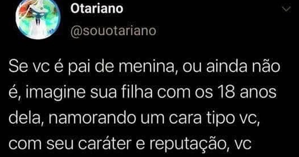 Existe um nível de sinceridade que só aparece quando alguém joga uma reflexão dessas na nossa cara. A imagem propõe aquele teste de caráter que derruba meio país: imaginar a própria filha namorando alguém igual a você. É quase uma autoavaliação emocional com tapa na nuca incluído, porque a maioria percebe que talvez não se contrataria nem pra estagiar na própria vida amorosa. A graça está nesse choque de realidade, nessa constatação silenciosa de que o currículo afetivo às vezes tem mais advertência do que recomendação. E o autor ainda manda a lição de moral como quem entrega um boleto: direto, inevitável e fazendo a gente pensar em tudo que já fez na juventude que não colocaria na ficha de ninguém.