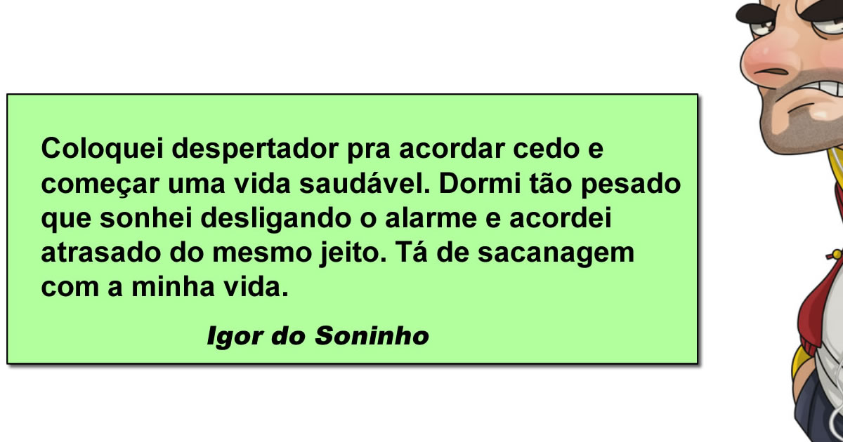 A humanidade vive dois grandes mistérios: como as pirâmides foram construídas e por que o despertador nunca respeita nossos sonhos de mudança de vida. A pessoa decide virar atleta olímpico do dia para a noite, programa o alarme todo confiante, separa até a roupa de caminhada e dorme com a sensação de que acordará renovada. No dia seguinte, descobre que o plano saudável durou exatamente até o travesseiro encostar na cabeça. O corpo cria uma habilidade quase sobrenatural de desligar o alarme no modo automático, como se existisse um botão secreto de sabotagem instalado no cérebro desde o nascimento.