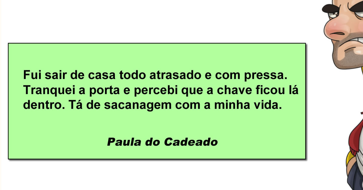 E poucas coisas representam melhor esse caos do que a combinação “porta trancada + chave esquecida”. É o tipo de situação que vem com um combo completo: arrependimento imediato, vergonha silenciosa e uma leve vontade de culpar qualquer coisa, menos a própria distração. A mente tenta até negociar com a realidade, como se existisse uma chance da chave simplesmente aparecer no bolso por boa vontade. Mas não, a vida gosta de dar essas pequenas rasteiras cotidianas pra lembrar quem manda. No fim, sobra aquele aprendizado inútil que só aparece depois do prejuízo: pensar dois segundos antes teria economizado uns bons minutos de sofrimento. Mas aí já era, né.