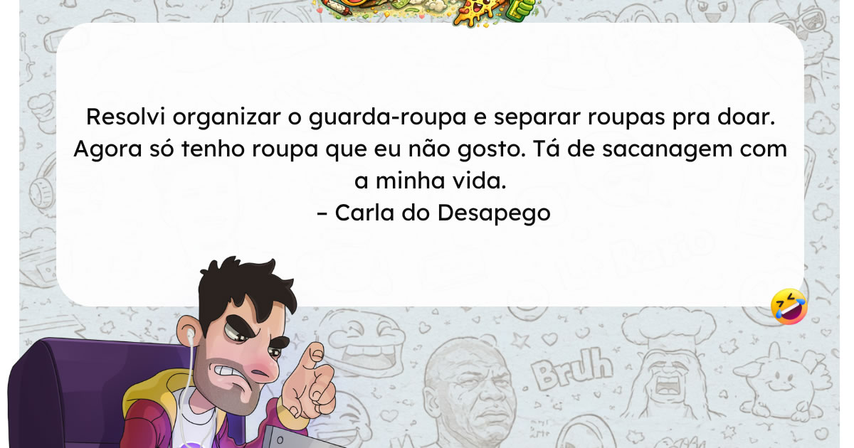 O mais curioso é como o cérebro funciona nesse processo: tudo parece descartável na hora, mas no dia seguinte cada peça ganha valor emocional de herança de família. Aquela camiseta que você nem ligava vira, de repente, a melhor que você já teve. E o guarda-roupa que antes parecia lotado vira um cenário de decisões duvidosas e combinações forçadas. No fim, a lição é clara: o problema nunca foi ter roupa demais, era ter apego de menos na hora errada. Porque no Brasil, desapego não é evolução… é só um caminho rápido pra se vestir mal e se arrepender depois.